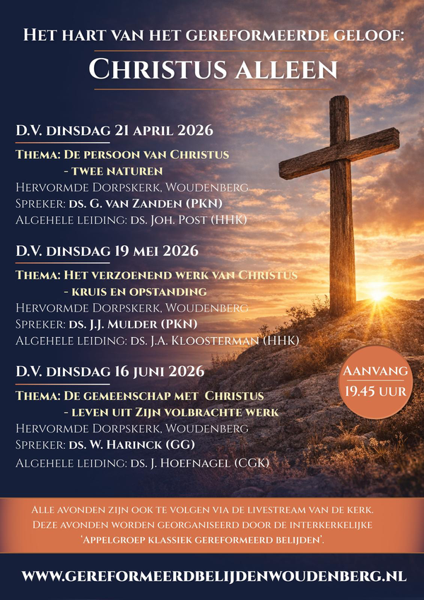 De Appelgroep Klassiek Gereformeerd Belijden Woudenberg belegt opnieuw 3 avonden.